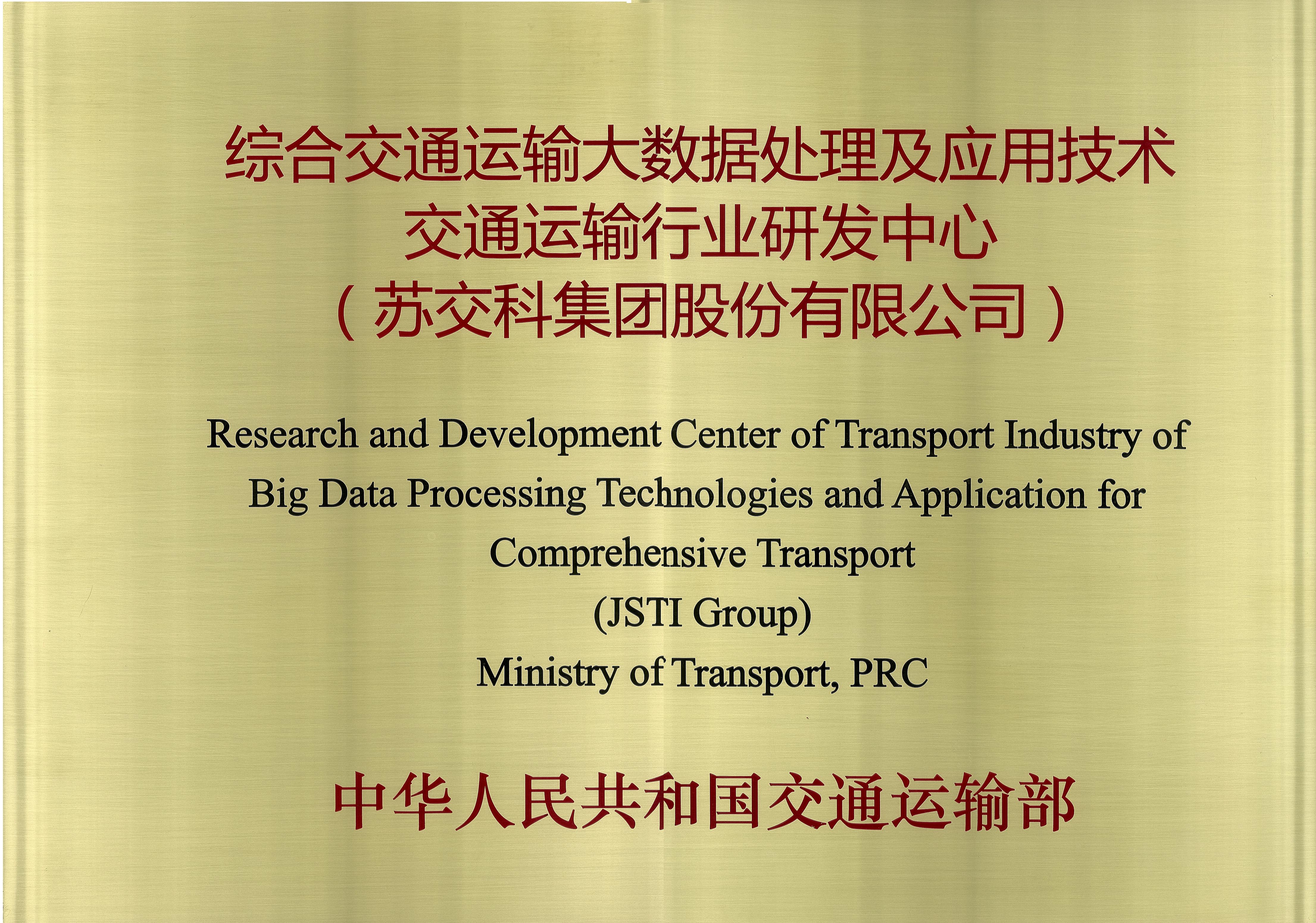 綜合交通運輸大數據處理及應用技術交通運輸行業研發中心(交通運輸部,2017)